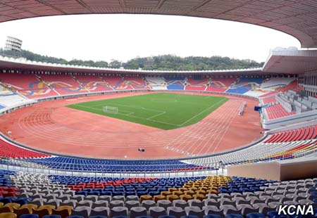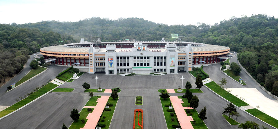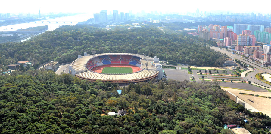 Štadión Kim Ir Sena, nachádzajúci sa na úpätí malebného kopca Moran.