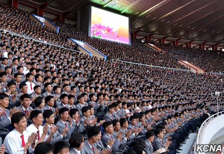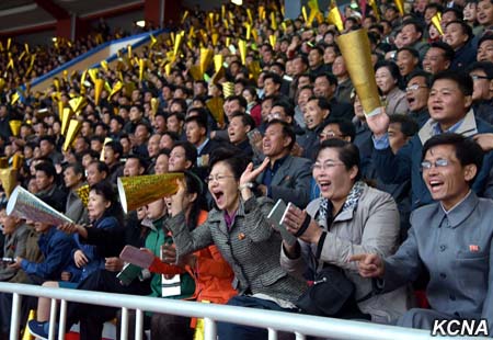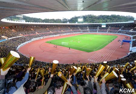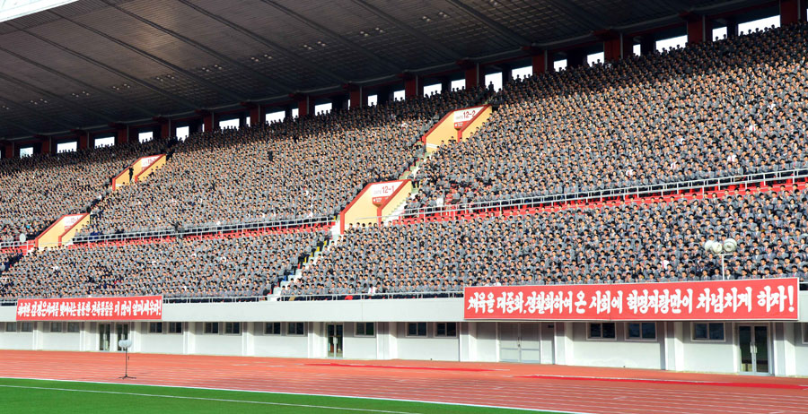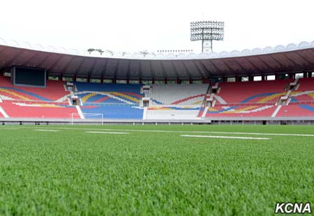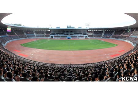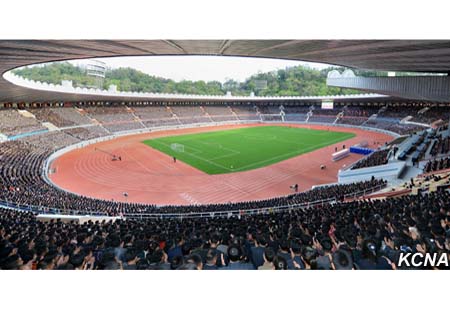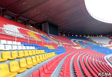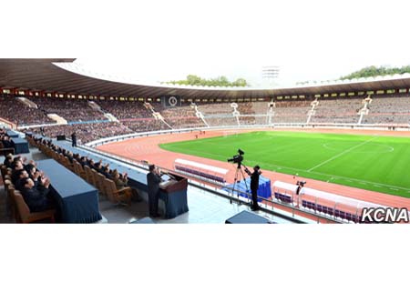 Povedal, že štadión, ktorý bol prestavaný v súlade s plánom KSP vybudovať športovú veľmoc je športovým centrom pre ľudí, postaveným v monumentálnom štýle vďaka iniciatíve a energickému vedeniu najvyššieho vodcu Kim Čong Una.