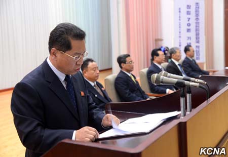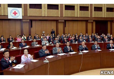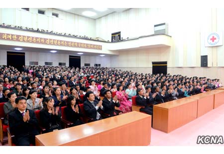 Ve středu se konalo shromáždění v sále kultury Čcholima u příležitosti 70. výročí Červeného kříže KLDR.
