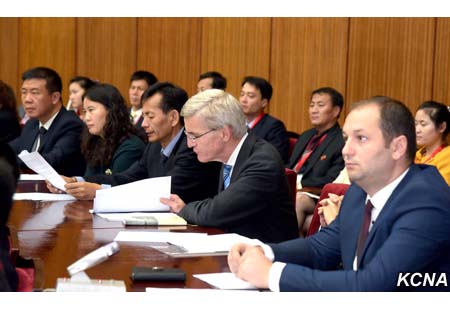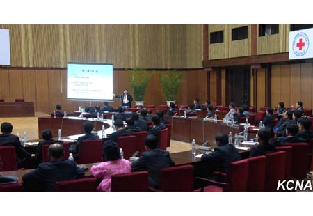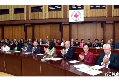 Boris Michel, delegát Mezinárodního výboru Červeného kříže, a Christopher Staines, delegát Mezinárodní federace společností Červeného kříže a Červeného půlměsíce, ve svých projevech vyjádřili svou vůli k dalšímu posílení mezinárodní spolupráce s tím, že společnost Červeného kříže KLDR provádí práci k uskutečnění základního principu hnutí Červeného kříže a Červeného půlměsíce zodpovědným způsobem.