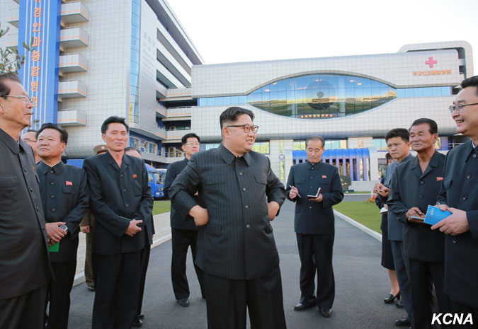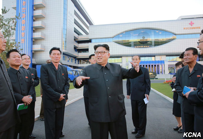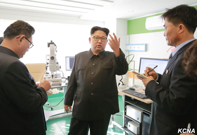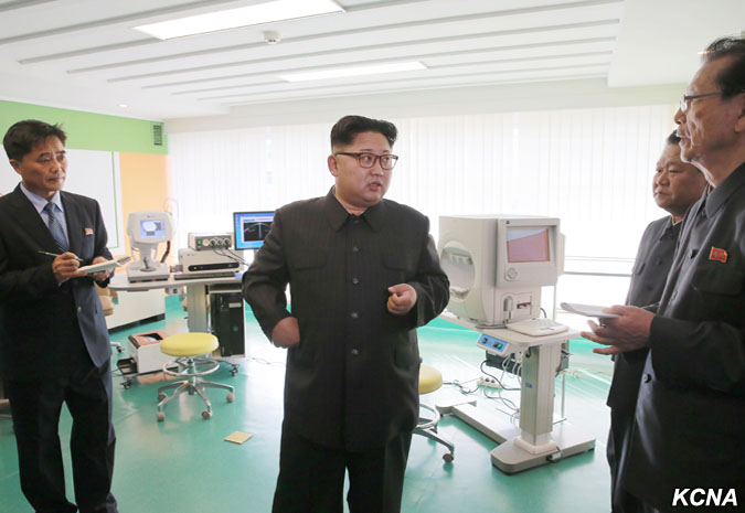 Pchjongjang, 18. října čučche 105 (2016) (KCNA) – Kim Čong Un, předseda Korejské strany práce, předseda Komise pro státní záležitosti KLDR a vrchní velitel Korejské lidové armády, poskytl polní pokyny nově vybudované Ústřední oční nemocnici Rjugjong.