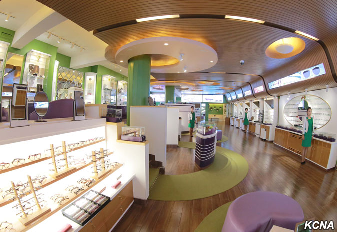 Poznamenal, že obchod má zkušebnu zraku, korekční místnost a místnost pro zpracování s cílem zajistit vědeckou přesnost, vlídnost a rychlost ve službě brýlí.