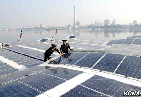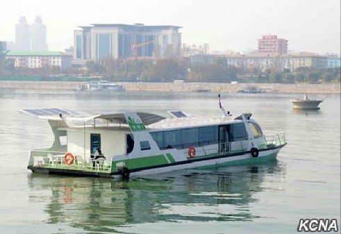 Pchjongjang, 4. listopadu čučche 105 (2016) (KCNA) – Solárně poháněné trajekty Okrju (Okryu) číslo 1, 2 a 3 zahájily svou službu na řece Tedong protékající Pchjongjangem, hlavním městem KLDR.