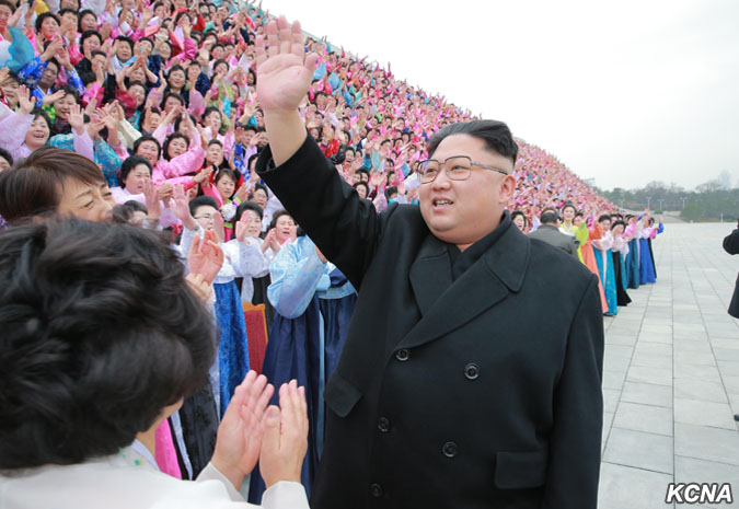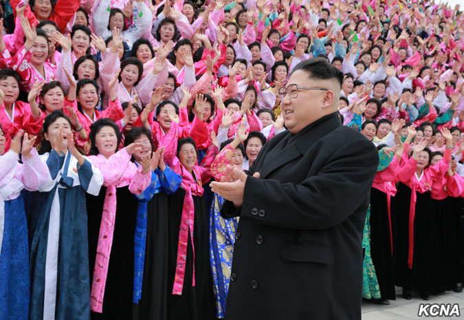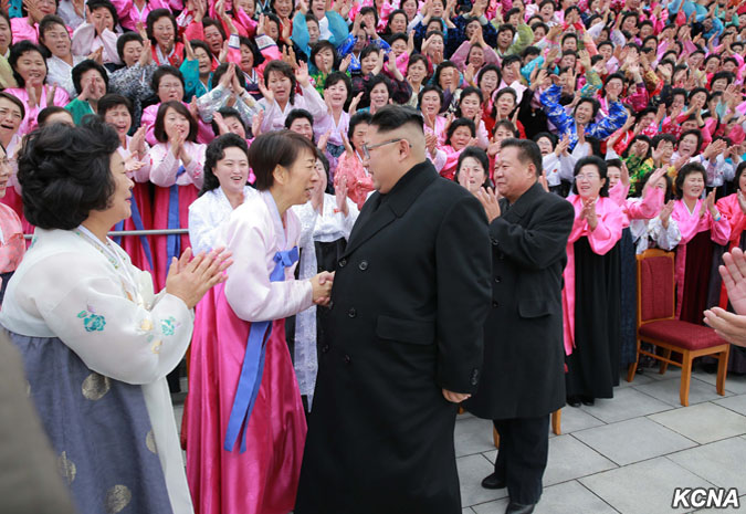 Pchjongjang, 22. listopadu čučche 105 (2016) (KCNA) – Kim Čong Un, předseda Korejské strany práce, předseda Komise pro státní záležitosti KLDR a vrchní velitel Korejské lidové armády, se vyfotografoval s účastnicemi 6. sjezdu Demokratického svazu žen Koreje.