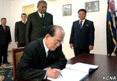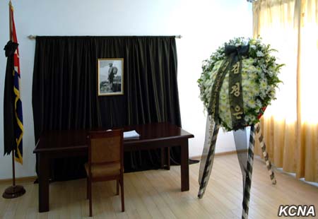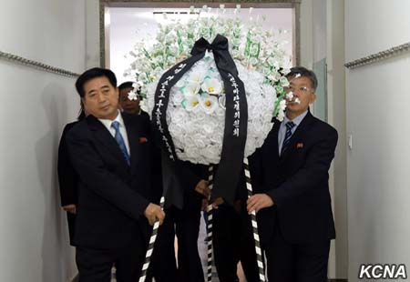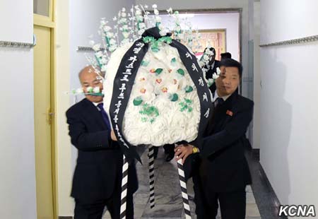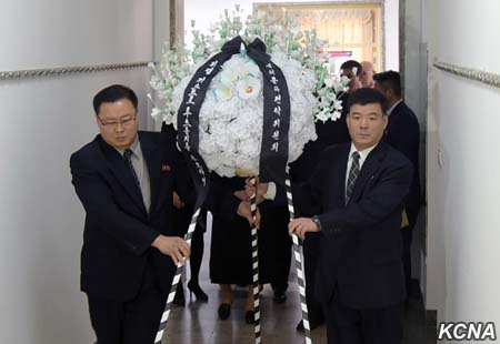 Před jeho fotografii byly položeny věnce zaslané ÚV KSP, prezídiem Nejvyššího lidového shromáždění KLDR, vládou KLDR, Ministerstvem lidových ozbrojených sil, Mezinárodním oddělením ÚV KSP, Ministerstvem zahraničních věcí, Ministerstvem vnějších ekonomických vztahů, Vzdělávací komise, Korejským výborem pro kulturní vztahy se zahraničím a Korejským výborem pro solidaritu s Kubou.