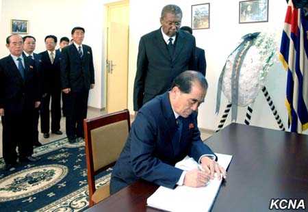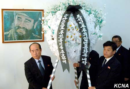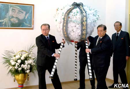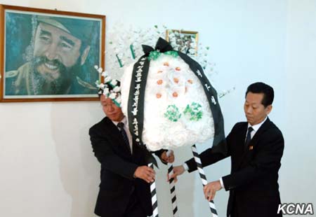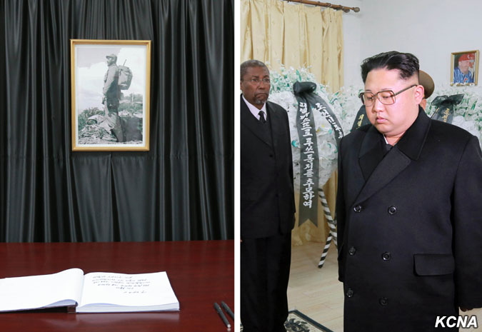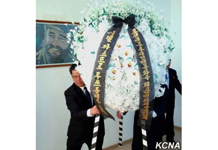 Kubánský velvyslanec vyjádřil hluboké poděkování Kim Čong Unovi za návštěvu kubánského velvyslanectví, aby sdílel smutek nad odchodem Fidela Castra Ruz se zaměstnanci kubánského velvyslanectví.