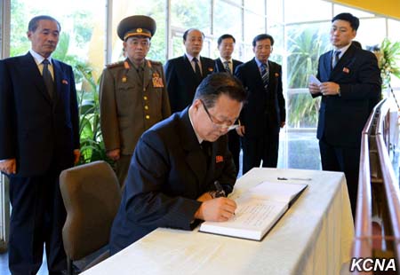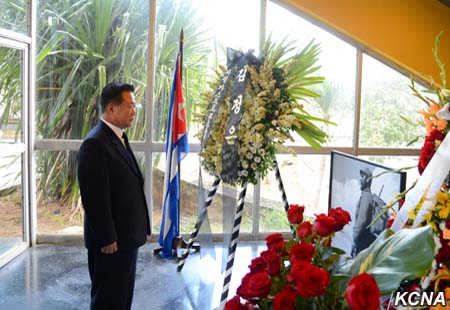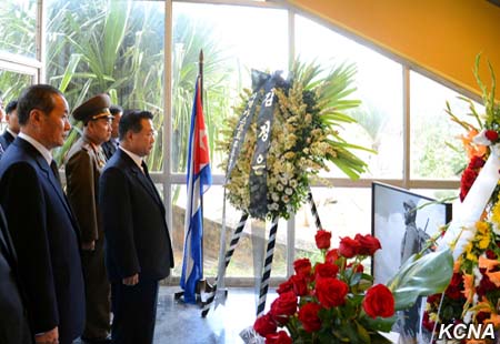 Pchjongjang, 1. prosince čučche 105 (2016) (KCNA) – Stranická a státní delegace KLDR vedená Čche Rjong He, členem prezídia politického byra Ústředního výboru Korejské strany práce, místopředsedou Komise pro státní záležitosti KLDR a místopředsedou ÚV KSP, navštívila kubánské Národní divadlo, smuteční místo, 29. listopadu, aby vyjádřila soustrast nad smrtí Fidela Castra Ruz, nejvyššího vůdce kubánské revoluce.