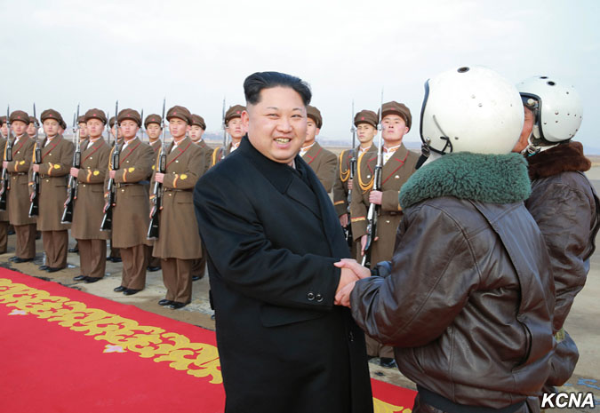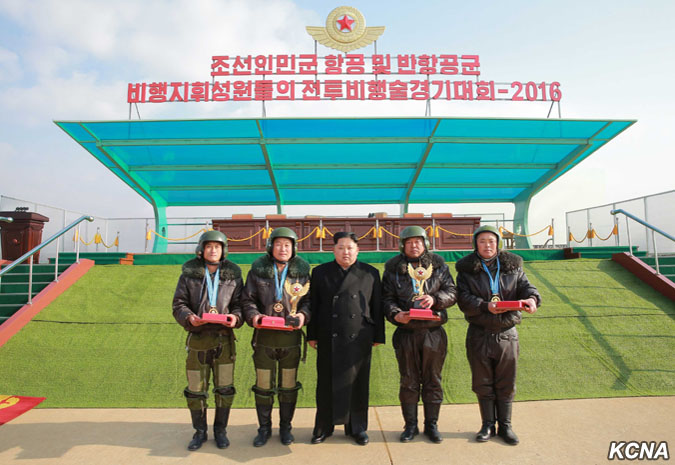 Pchjongjang, 4. prosince čučche 105 (2016) – Kim Čong Un, předseda Korejské strany práce, předseda Komise pro státní záležitosti KLDR a nejvyšší velitel Korejské lidové armády (KLA) zhlédl soutěž bojových letů velícího personálu vzdušných a protiletadlových sil KLA 2016.