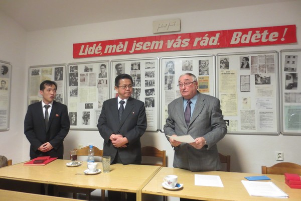 Dovolte mi, abych využil této příležitosti a seznámil Vás s dopisem Společnosti Pektusan k tomuto výročí, který bych rád potom předal soudruhu velvyslanci k předání nejvyššímu představiteli Korejské lidově demokratické republiky, předsedovi KSP, předsedovi Komise pro státní záležitosti KLDR a nejvyššímu veliteli Korejské lidové armády soudruhu KIM ČONG UNOVI.