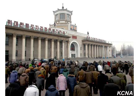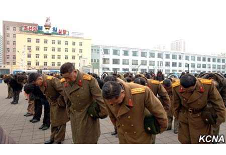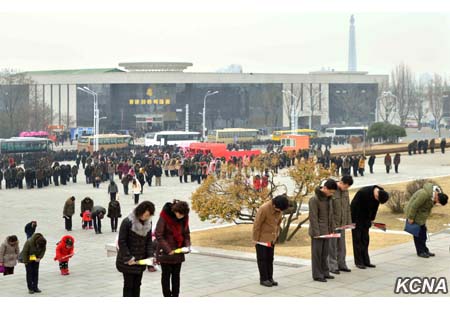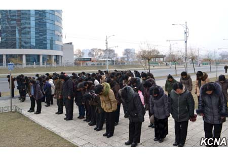 Přítomni zde byli Kim Jong Nam, Hwang Pjong So, Pak Pong Ču, Čche Rjong He a další vysocí straničtí, státní a armádní činitelé, členové orgánu ústředního vedení strany v Pchjongjangu a funkcionáři strany, ozbrojených sil a mocenských orgánů, veřejných organizací, ministerstev a státních institucí, mužstvo a důstojníci Korejské lidové armády a Korejských lidových vnitřních bezpečnostních sil a funkcionáři institucí, průmyslových podniků a zemědělských družstev v Pchjongjangu, osoby, které jsou spojené s revoluční činností Kim Čong Ila, lidé, kteří měli čest být jím přijati, zasloužilé osobnosti, pozůstalé rodiny revolučních mučedníků, delegace zámořských Korejců, krajané a velitel pchjongjangské mise Antiimperialistické národní demokratické fronty.