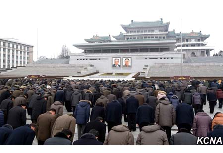 Spolu s účastníky vzdal hlubokou úctu a poklonil se Kim Čong Ilovi.