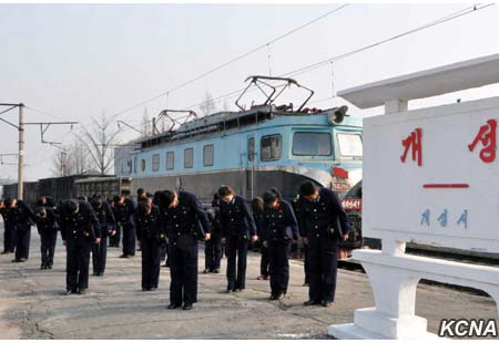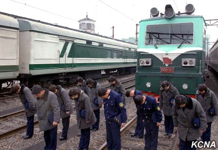 Doprovodem nejvyššího vůdce byli Kim Jong Nam, Hwang Pjong So, Pak Pong Ču, Čche Rjong He a další vysocí straničtí, státní a armádní představitelé a členové ústředního stranického vedoucího orgánu v Pchjongjangu, funkcionáři orgánů strany a ozbrojených sil, ministerstev a státních institucí.