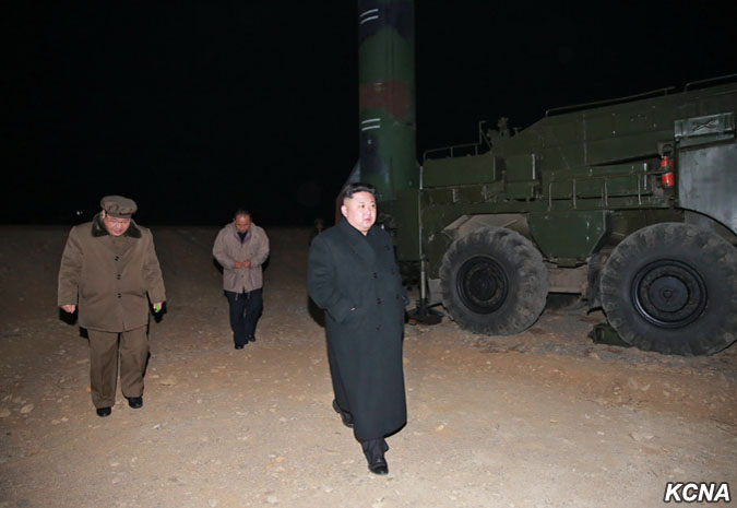 Provázeli ho Ri Pjong Čchol, Kim Čong Sik a další přední představitelé Ústředního výboru KSP a vědci a technici v oblasti jaderných zbraní a raketového výzkumu.