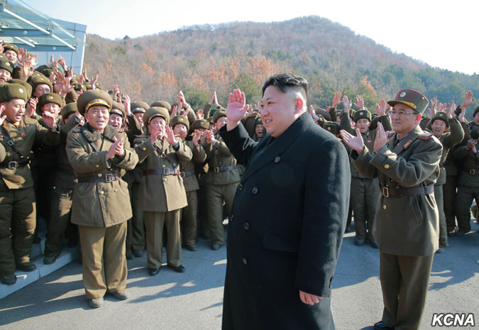 Vyjadřuje očekávání a přesvědčení, že hwasongští dělostřelci strategických sil KLA úspěšně splní své posvátné poslání a povinnost jako úctyhodná síla Korejské strany práce v boji pohrdajícím smrtí proti nepřátelům, vyfotografoval se s nimi.