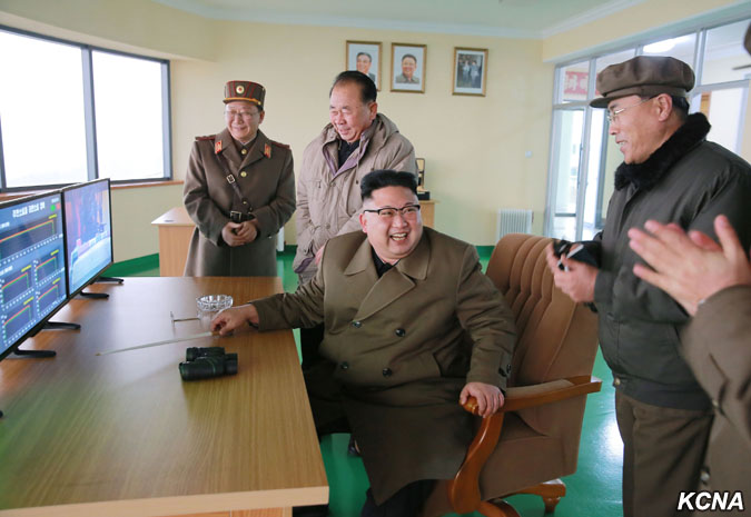 Kim Čong Un zaujal pozorovací místo a dal rozkaz k zahájení testu.