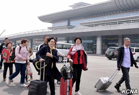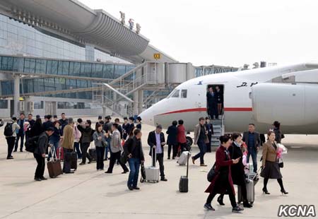 První letadlo s cestujícími na palubě dorazilo do Pchjongjangu 28. března.