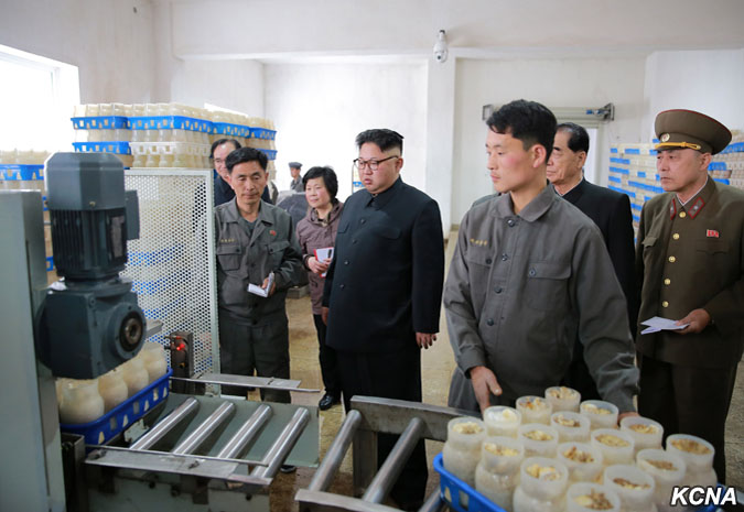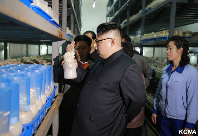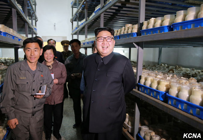 Pchjongjang, 8. dubna čučche 106 (2017) (KCNA) – Kim Čong Un, předseda Korejské strany práce (KSP), předseda Komise pro státní záležitosti KLDR a vrchní velitel Korejské lidové armády, poskytl polní pokyny Pchjongjangské houbové farmě.