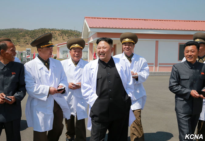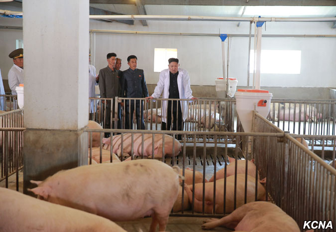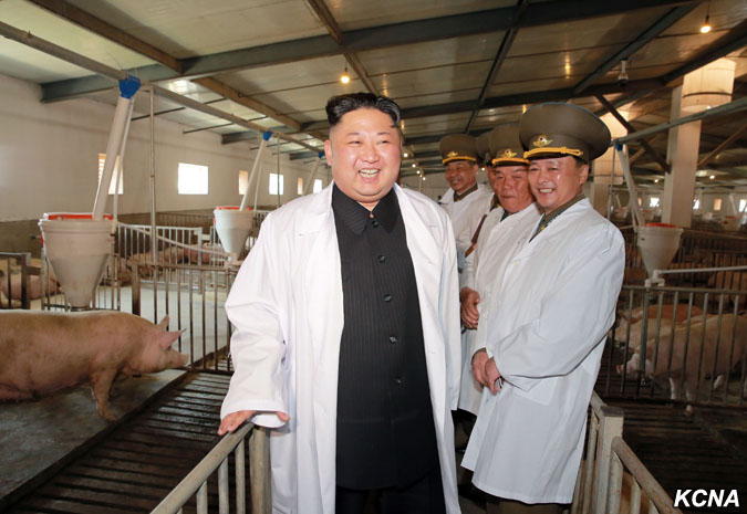 Pchjongjang, 23. dubna čučche 106 (2017) (KCNA) – Vážený nejvyšší vůdce Kim Čong Un navštívil 22. dubna Thečchonskou prasečí farmu vzdušných a protivzdušných sil Korejské lidové armády.