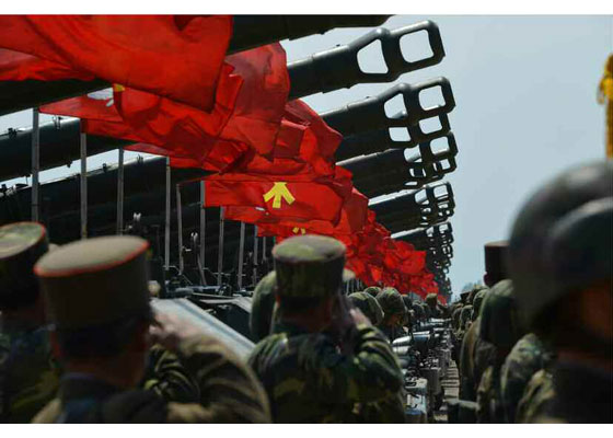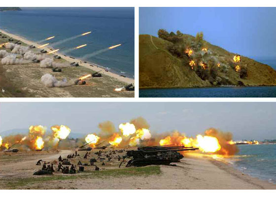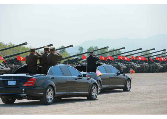 Kim Čong Un prijal pozdrav od generálplukovníka Pak Jong Chona, riaditeľa delostreleckého úradu KĽA. Prehliadol si sprievod námorníctva, vzdušných síl, jednotiek protivzdušnej obrany a elitných delostreleckých jednotiek KĽA, ktoré sa usporiadali a pripravili na ukážku kombinovanej paľby.