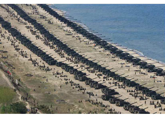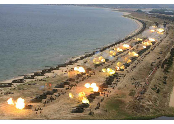 Viac ako 300 samohybných diel ťažkého kalibru, ktoré sa zoradili pozdĺž pobrežia, spustilo naraz streľbu. Udatní delostrelci nemilosrdne a uspokojivo zasiahli ciele a strely boli veľmi presné, povedal a dodal, že salvou výstrelov ukázali silu nášho vojska, prinášajúcu nepriateľom nemilosrdný trest.