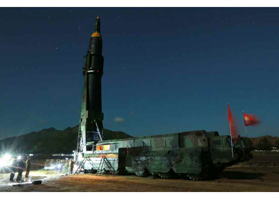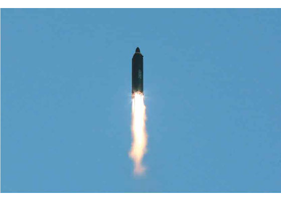 Pchjongjang, 15. mája čučche 106 (2017) (Rodong Sinmun) – Skúšobný odpal novej balistickej rakety stredného doletu Hwasong-12 bol v nedeľu úspešne uskutočnený vedcami a technikmi v oblasti raketového výskumu, ktorí odvážne postupujú smerom k novému cieľu, vybudovať svetovú jadrovú mocnosť v súlade s prezieravou myšlienkou predsedu Kórejskej strany práce, predsedu Komisie pre štátne záležitosti KĽDR a najvyššieho veliteľa Kórejskej ľudovej armády, súdruha Kim Čong Una.