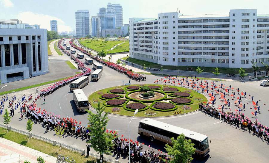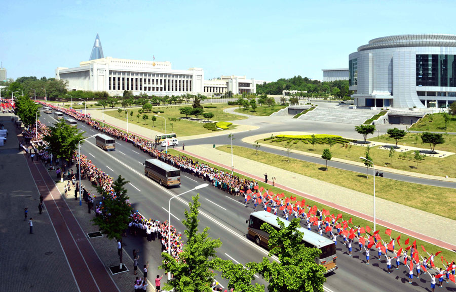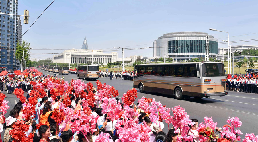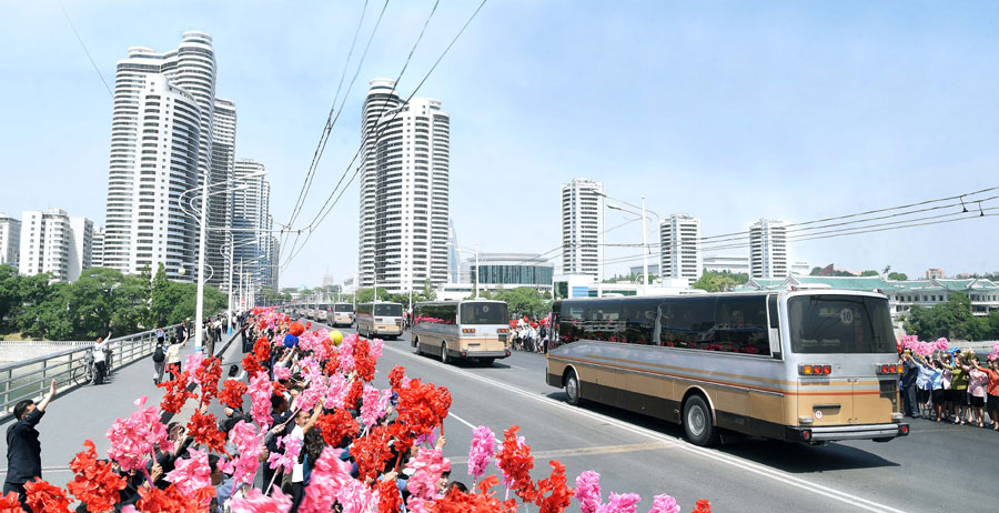 Státisíce ľudí všetkých profesií, školská mládež a deti čakali na zaslúžilých ľudí v uliciach smerom od Pchjongjanského krytého štadióna, na ulici Mansude, na križovatkách v štvrti Changjon, Univerzitnej ulici atď.