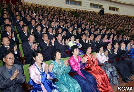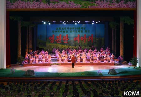 Vystupujúci nahlas ospievali činy prezidenta Kim Ir Sena, vždy víťaziaceho brilantného veliteľa, vynikajúceho stratéga a jedinečného človeka, ktorý viedol protijaponskú vojnu k žiarivému víťazstvu a dosiahol oslobodenie krajiny.