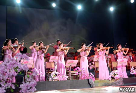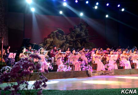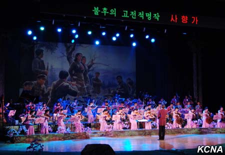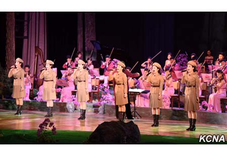 Hjesan, 4. júna čučche 106 (2017) (KCNA) – Skupina Samčijon (Samjiyon) z Umeleckého súboru Mansude uskutočnila v nedeľu vystúpenie v provinčnom umeleckom divadle Rjanggang pri príležitosti 80. výročia víťaznej bitky pri Počchonbo, vedenej prezidentom Kim Ir Senom.