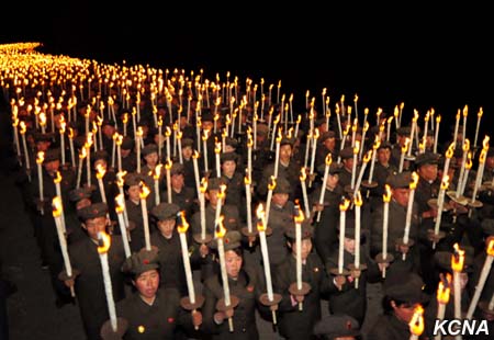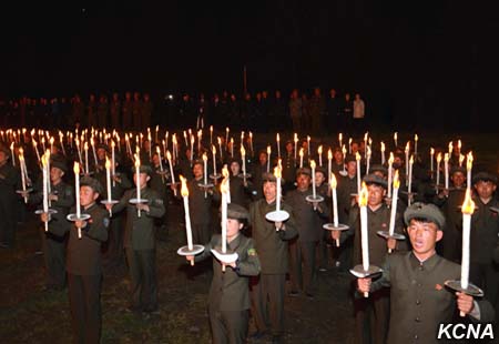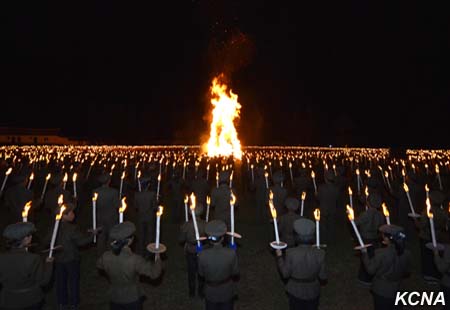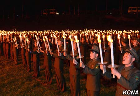 Počchon, 4. júna čučche 106 (2017) (KCNA) – Študenti a ďalší mladí ľudia urobili v nedeľu v Počchonbo svetelný pochod a stretnutie pri vatre, aby oslávili 80. výročie víťaznej bitky pri Počchonbo pod vedením prezidenta Kim Ir Sena.