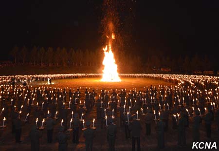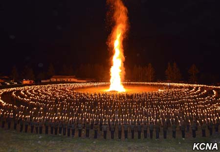 Vedúci predstavitelia strany, štátu a armády, funkcionári strany, výkonných orgánov zväzu mládeže a ďalší manifestujúci zapálili oheň. Bola zarecitovaná časť dlhej epickej básnickej skladby Hora Pektu pod názvom Bitka pri Počchonbo.
