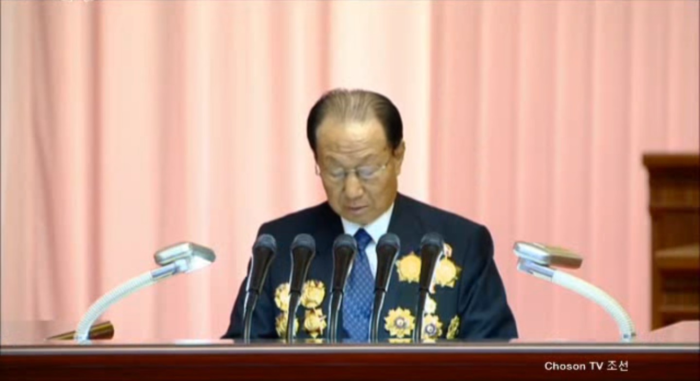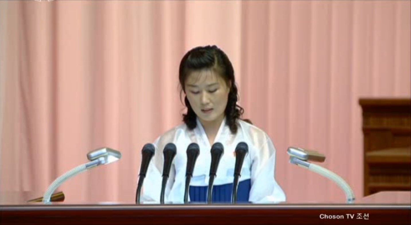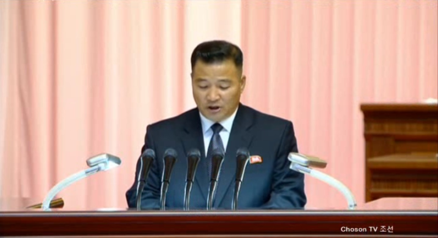 Čon Jong Nam, první tajemník Ústředního výboru Svazu mládeže, podal zprávu o prvním bodu programu.