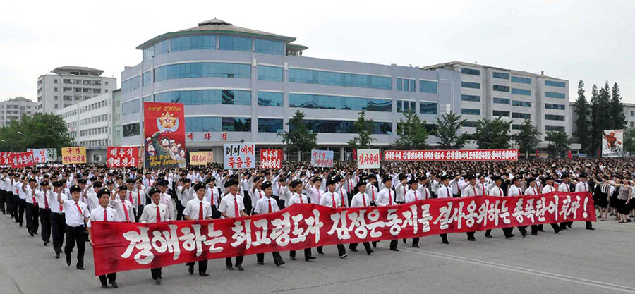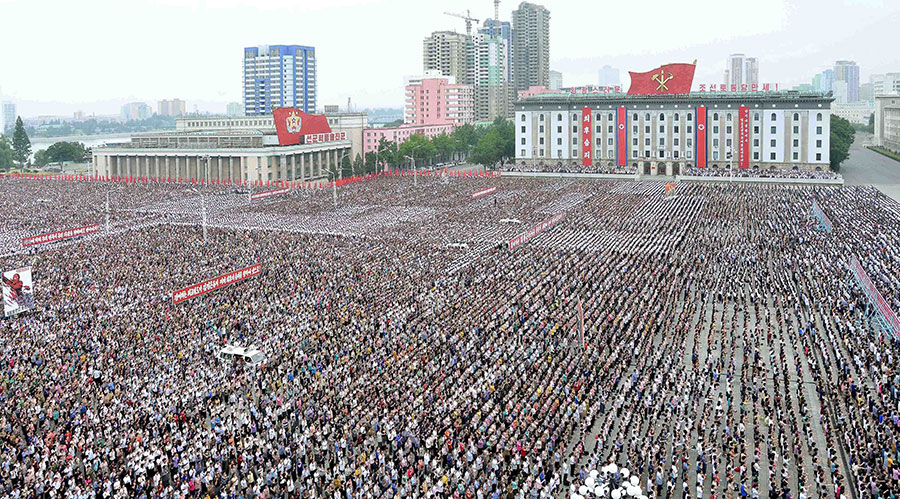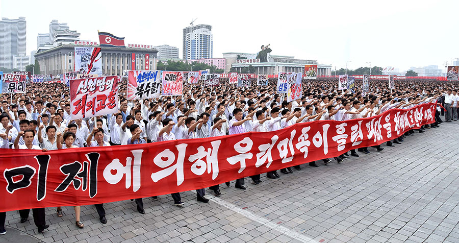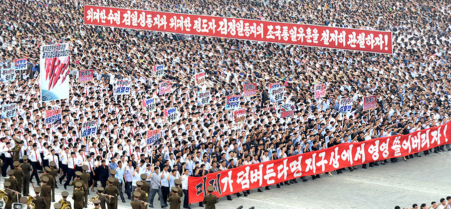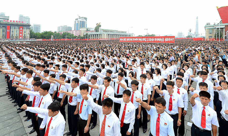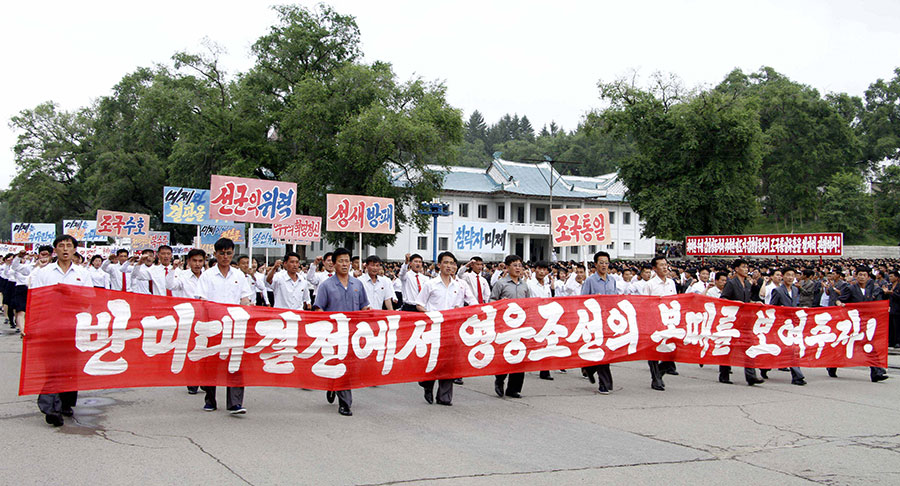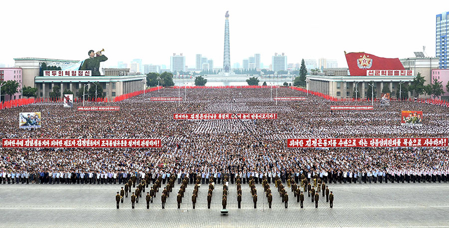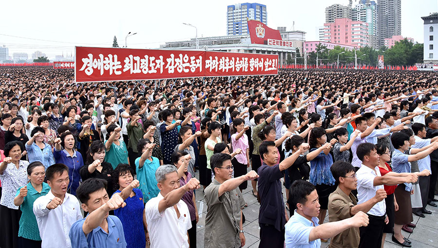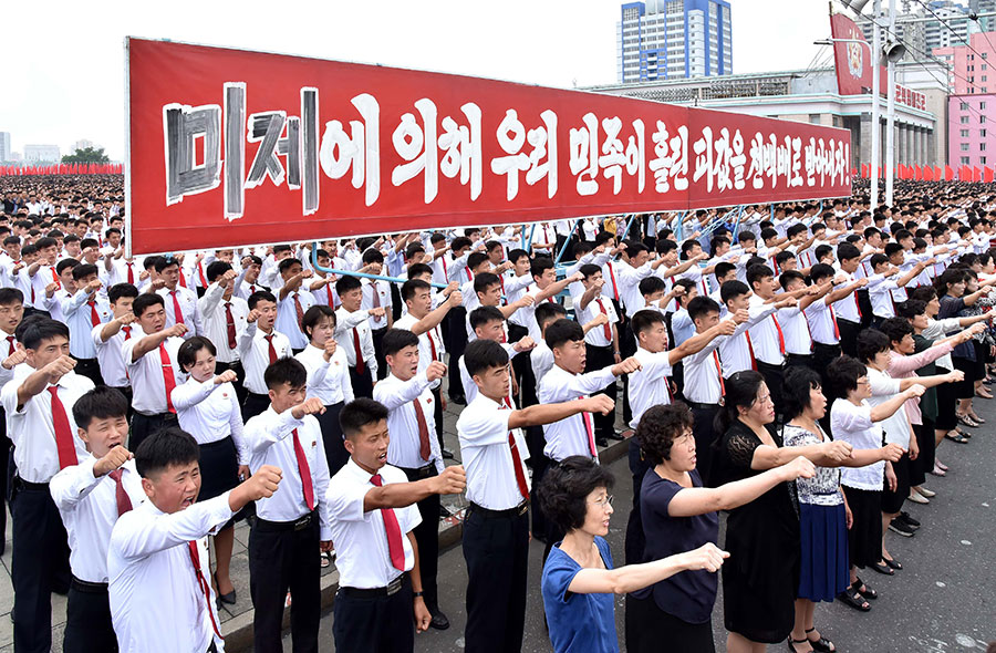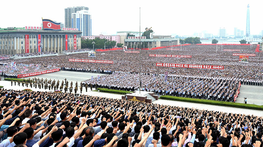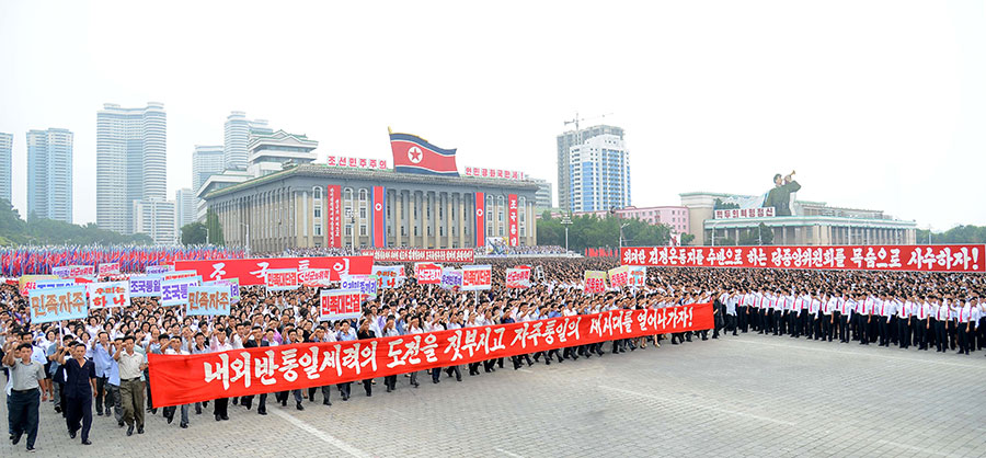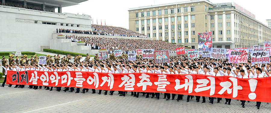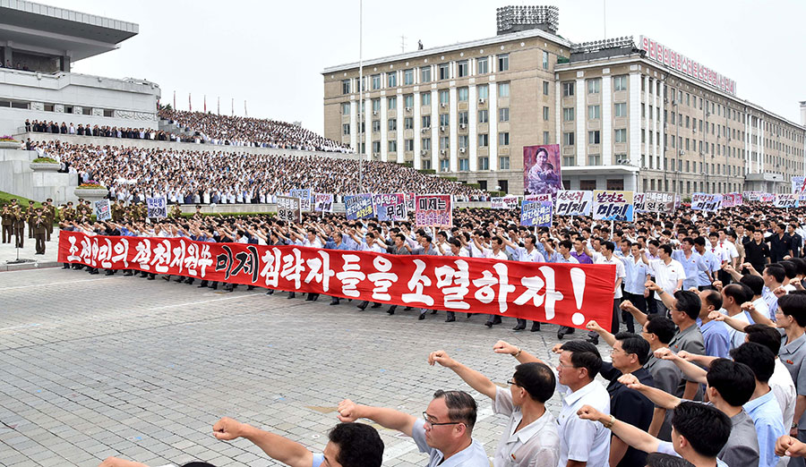 Pchjongjang, 25. června čučche 106 (2017) (KCNA) – Na Kim Ir Senově náměstí se uskutečnila masová manifestace obyvatel Pchjongjangu 25. června, v Den boje proti imperialismu USA.