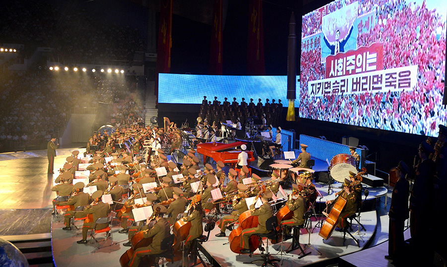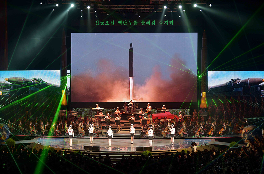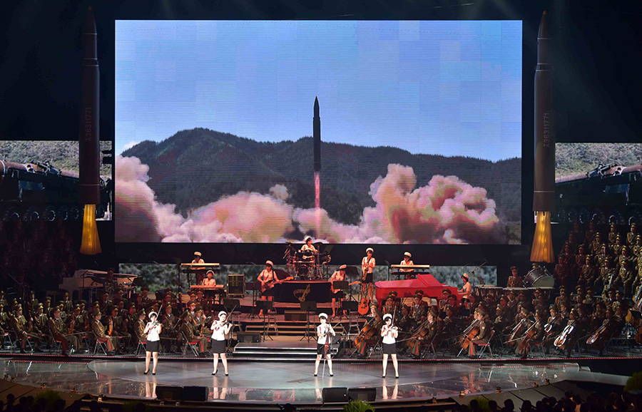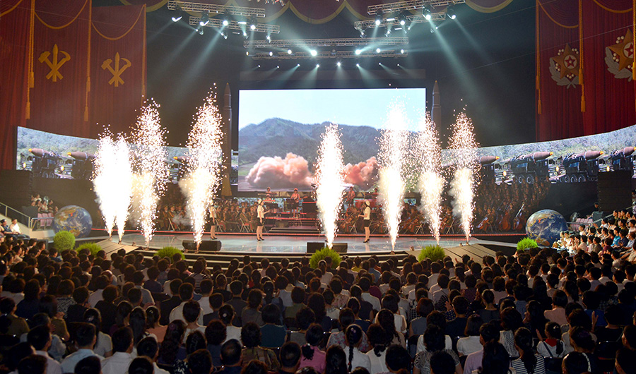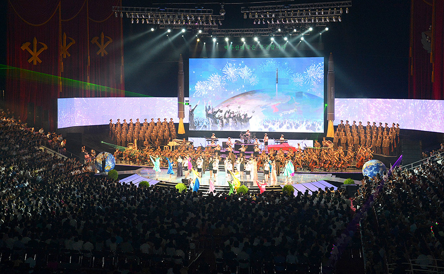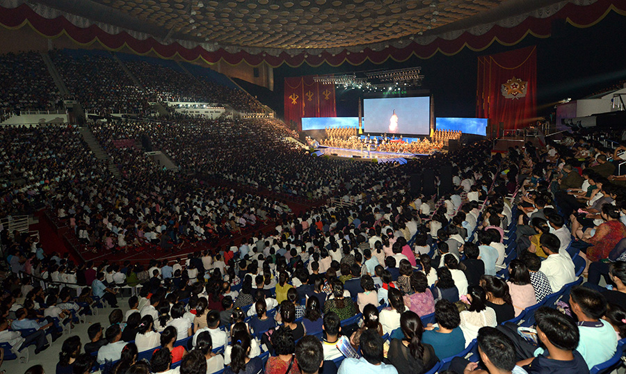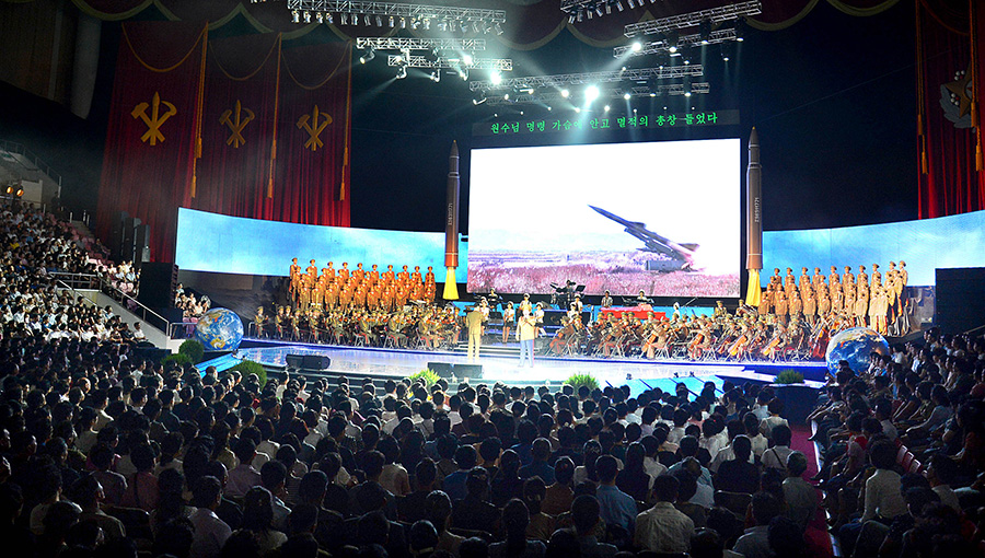 Pchjongjang, 10. července čučche 106 (2017) (KCNA) – 9. července se zde konalo umělecké představení na oslavu úspěšného zkušebního odpálení mezikontinentální balistické rakety Hwasong-14.
