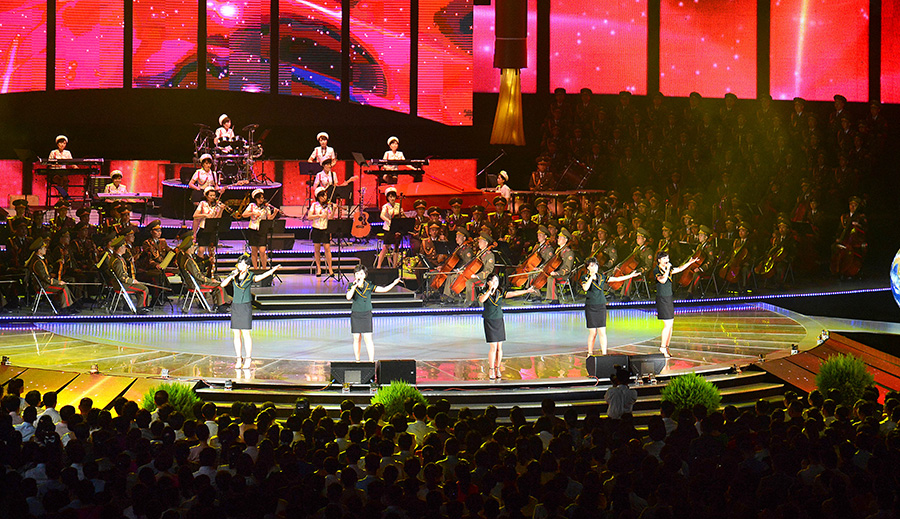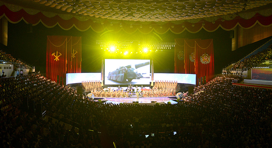 Provedena na jevišti byla taková pestrá čísla jako mužský sbor „Sláva naší velké straně“, instrumentální hudba a píseň „Slavná vlast“, ženský sbor „Píseň socialistického pokroku“, lehká hudba „Pochod raketového dělostřelectva republiky“, mužské sólo i sbor „Mír je zaručen našimi zbraněmi“ a step „Přípitek vítězům“ od umělců ze skupiny Moranbong, skupiny Čchongbong, Státního zasloužilého sboru a umělecké skupiny Wangčesan.