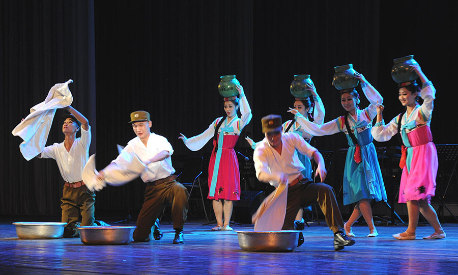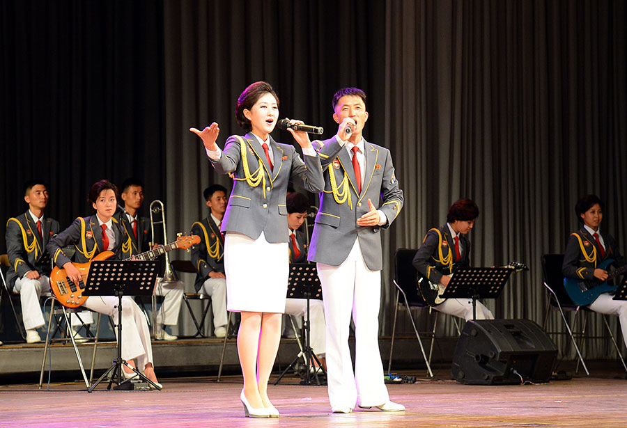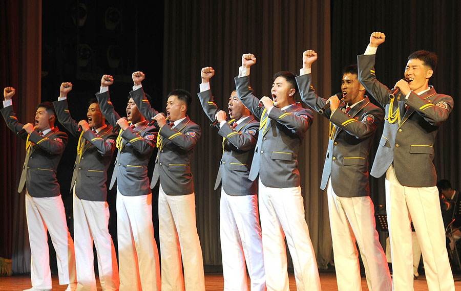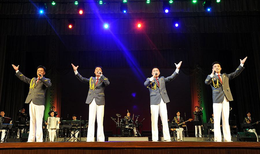 Účinkující pěli vysokou chválu nehynoucím velkým činům prezidenta Kim Ir Sena a vůdce Kim Čong Ila, kteří vedli Vlasteneckou osvobozeneckou válku k zářícímu vítězství a přeměnili zemi v plnohodnotnou vojenskou mocnost a jaderně ozbrojený stát.