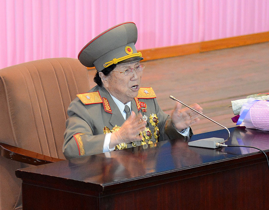 Na schůzi promluvila hrdinka práce soudružka Čon Ku Gang, přednášející v Muzeu Vítězné vlastenecké osvobozenecké války.