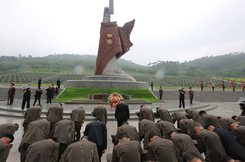 Pchjongjang, 28. července čučche 106 (2017) (KCNA) – Vážený nejvyšší vůdce soudruh Kim Čong Un navštívil ve čtvrtek hřbitov hrdinů Vlastenecké osvobozenecké války u příležitosti 64. výročí vítězství korejského lidu ve Vlastenecké osvobozenecké válce a vzdal čest padlým bojovníkům lidové armády.