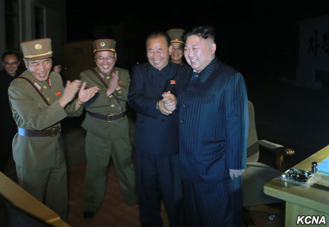 Drahý vážený vůdce soudruh Kim Čong Un srdečně blahopřál vědcům a technikům v oblasti raketového výzkumu, kteří znovu prokázali nezávislou prestiž a důstojnost jaderné moci čučche, světové raketové moci, tím, že uspěli ve  druhém testování rakety Hwasong-14. Když je objal, měl s nimi fotografickou schůzku, která vejde do dějin.