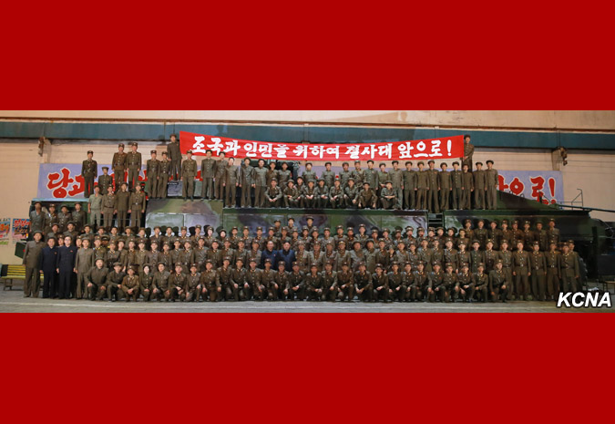 Vyjádřiv velkou spokojenost s výsledky testovací střelby mezikontinentální balistické rakety, která se ukázala být dokonalým a velkým úspěchem bez jediného centimetru chyby, drahý vážený vůdce soudruh Kim Čong Un vysoce ocenil vědce, techniky a funkcionáře v oblasti raketového výzkumu a předal jim zvláštní poděkování jménem Ústředního výboru strany.