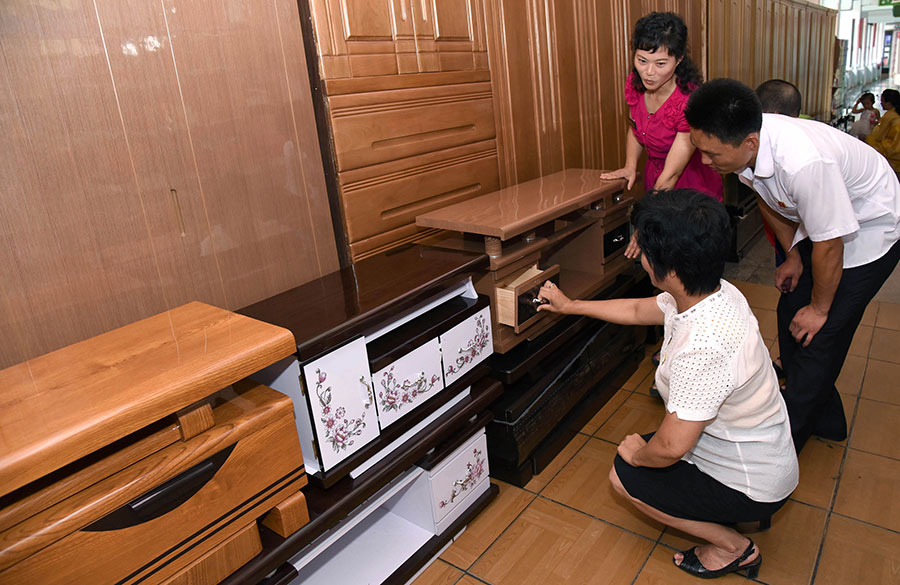 Pchjongjang, 2. srpna čučche 106 (2017) (KCNA) – Funkcionáři a zaměstnanci Obchodu přímého prodeje Pchjongčchon v Pchjongjangu usilují o lepší služby lidu.