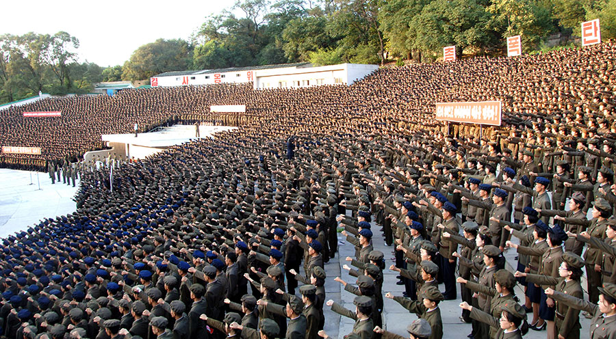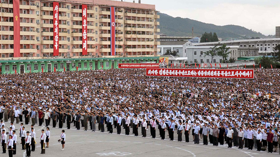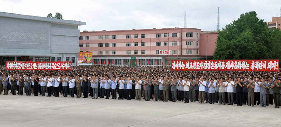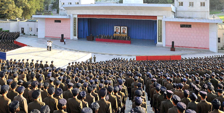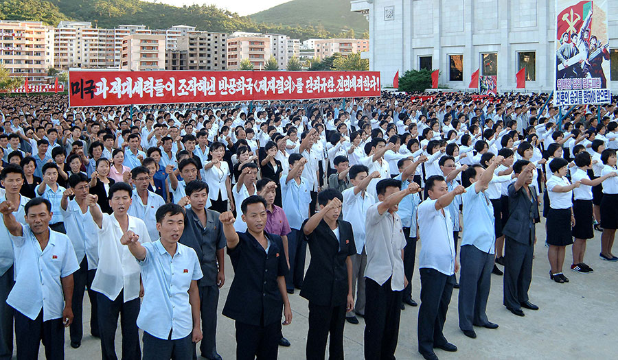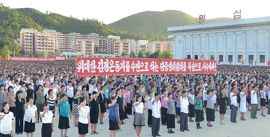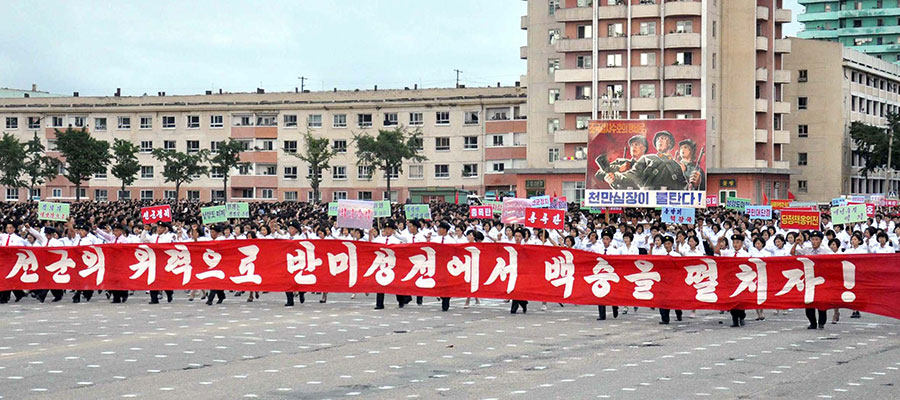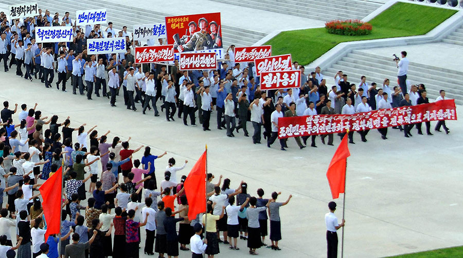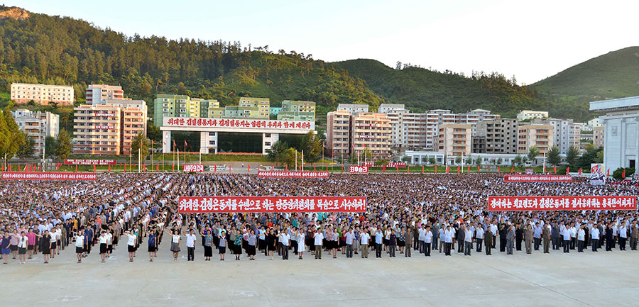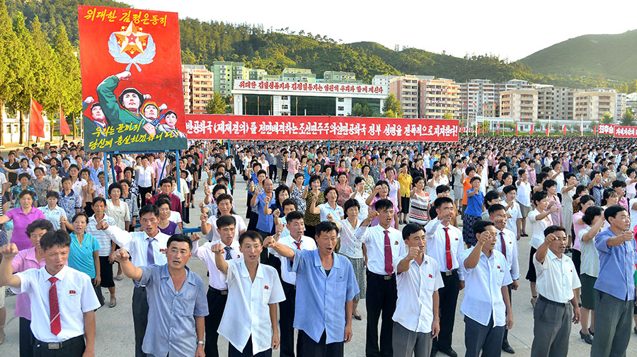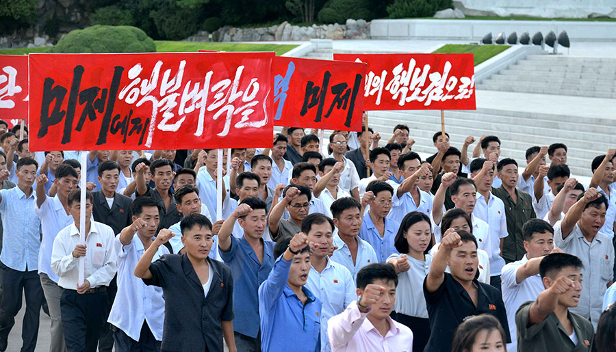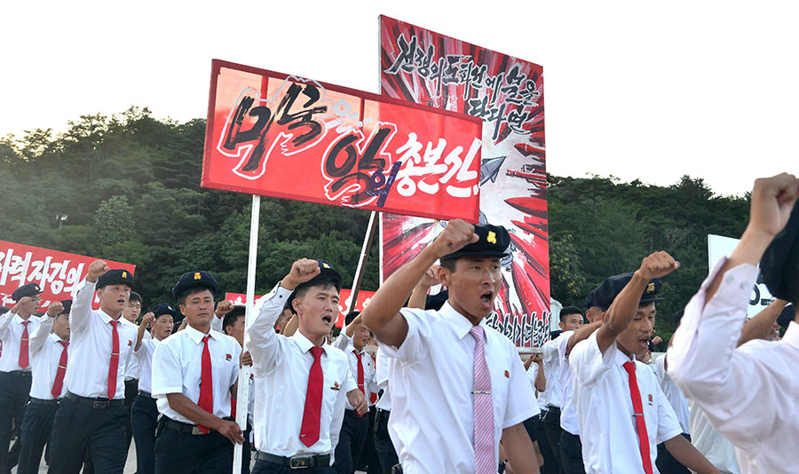 Pchjongjang, 11. srpna čučche 106 (2017) (KCNA) – Shromáždění mládeže, pracujících a odborářů se konala v pátek v Přírodním divadle Parku mládeže a na ploše Památníku založení strany, aby vyjádřili svou naprostou podporu vládnímu prohlášení, které kategoricky odmítlo nedávnou „rezoluci o sankcích“ RB OSN.