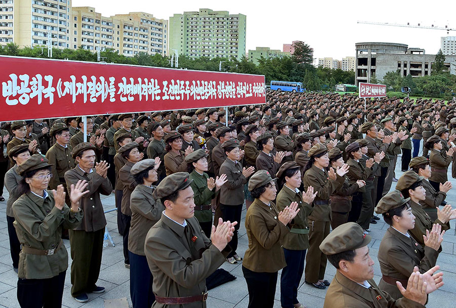 Řečníci uvedli, že přístup KLDR k nejsilnějším atomovým bombám a raketám je legitimním krokem pro sebeobranu k ochraně osudu země a národa a zajištěním práva na nezávislý vývoj, vehementně odsuzujíce imperialisty USA za podněcování lůzy k vymyšlení špatného dokumentu k potlačení suverenity a práva KLDR na existenci a rozvoj.