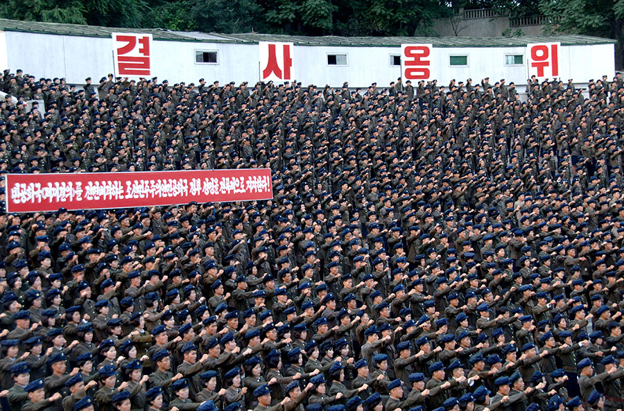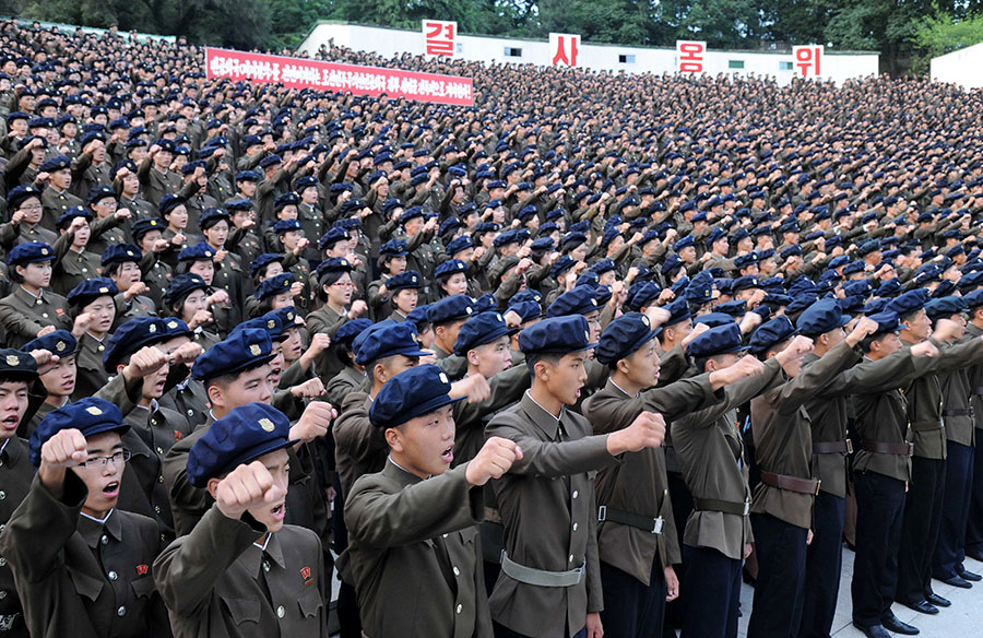 Řečníci uvedli, že jelikož mají váženého nejvyššího vůdce Kim Čong Una a sílu jednomyslné jednoty a samostatného rozvoje silnější než atomové zbraně, sloužící mužstvo a lid KLDR budou pevně hájit bezpečnost země a vybojují konečné vítězství věci socialismu, i kdyby zaútočili všichni hroziví nepřátelé na zemi.