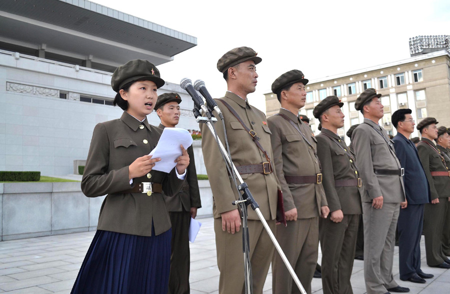 Pchjongjang, 12. srpna čučche 106 (2017) (KCNA) – Mnoho pracující mládeže, vysokoškolských studentů a školáků vyšších středních škol v KLDR se dobrovolně přihlásilo, že vstoupí nebo se vrátí do Korejské lidové armády, po oznámení prohlášení vlády KLDR.
