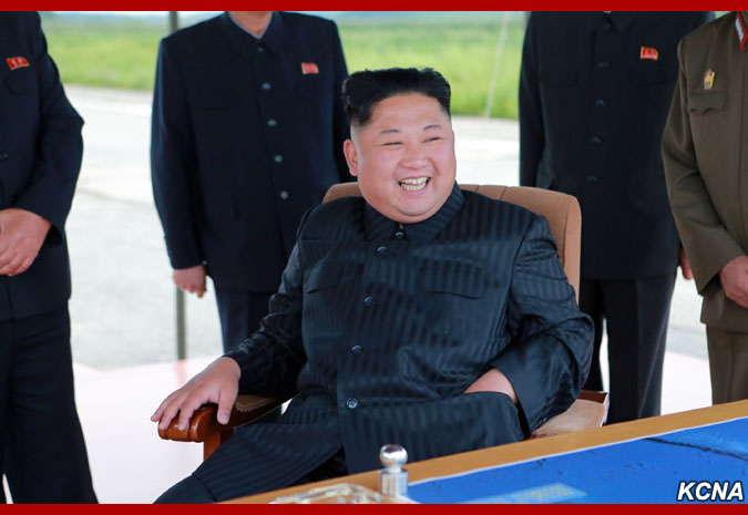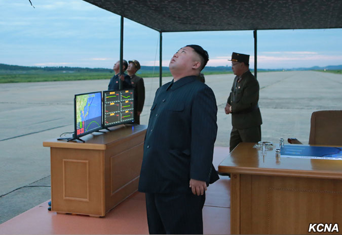 Pchjongjang, 30. srpna čučche 106 (2017) (KCNA) – Nejvyšší vůdce vážený soudruh Kim Čong Un, předseda Korejské strany práce, předseda Komise pro státní záležitosti KLDR a vrchní velitel Korejské lidové armády, vedl na místě cvičnou střelbu strategické balistické rakety středního a dlouhého doletu strategických sil KLA.