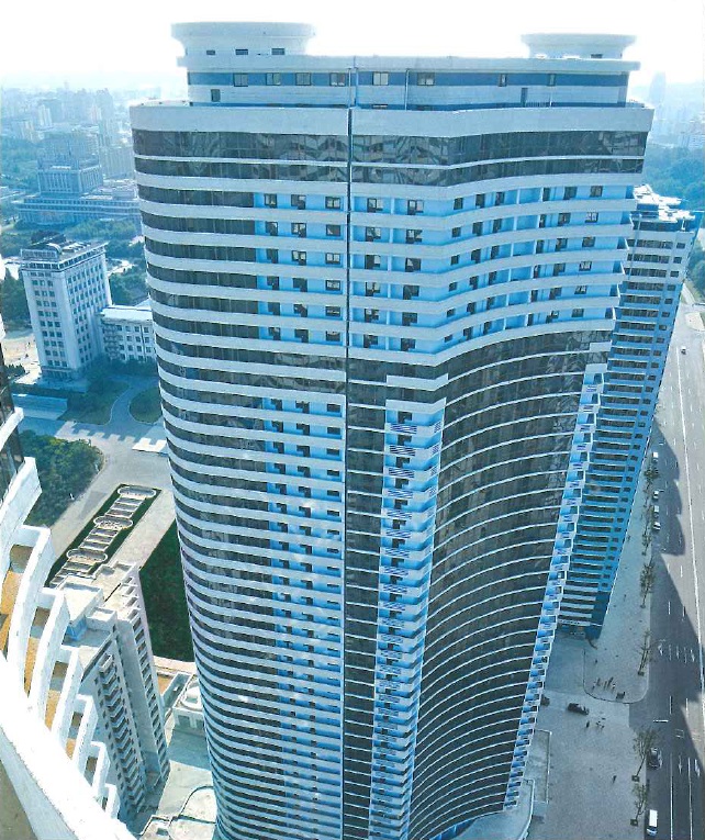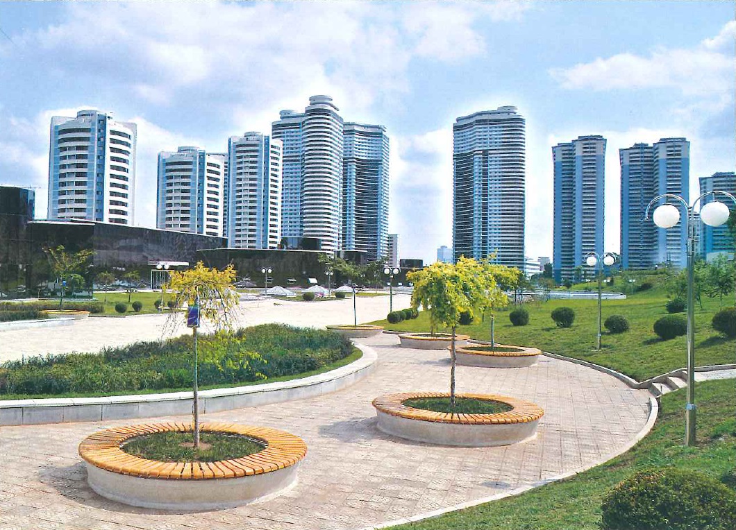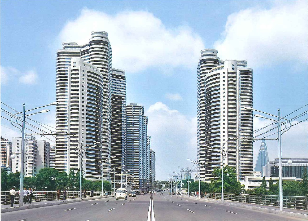 Soudruh předseda Kim Čong Il, věren prezidentově šlechetné náklonnosti k lidu, zajistil, že byly postaveny moderní domy pro lid v Pchjongjangu i jiných částech země.