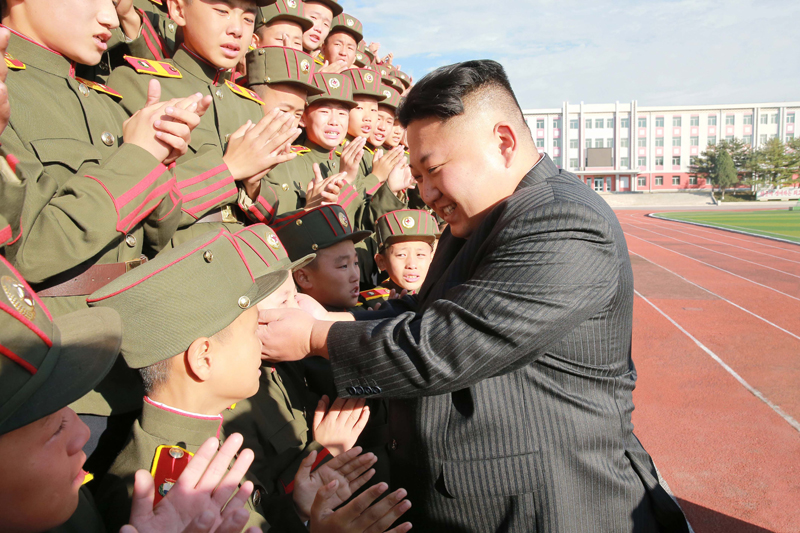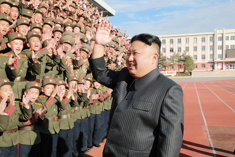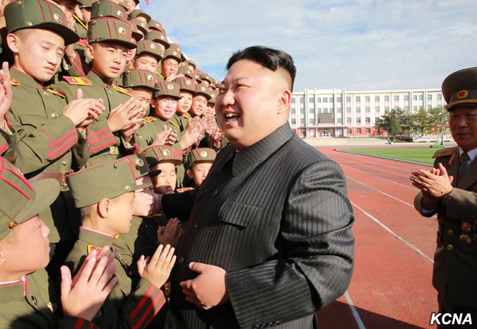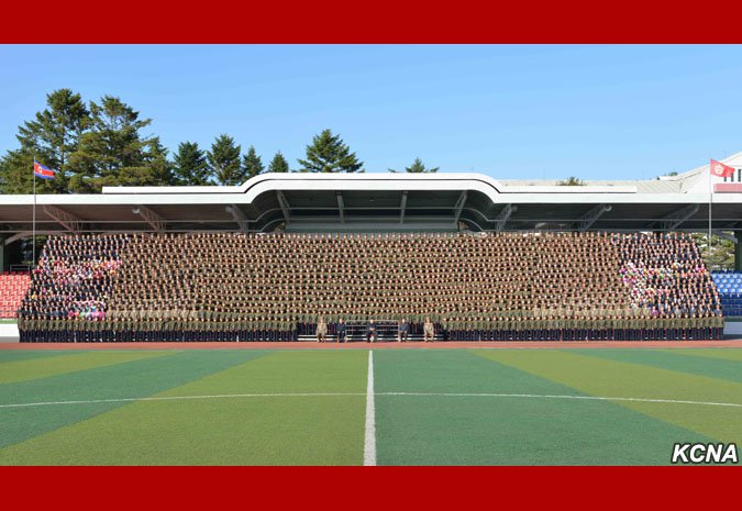 Vážený soudruh nejvyšší vůdce byl přivítán armádním generálmajorem O Rjong Tekem, rektorem školy, a dalšími vedoucími funkcionáři školy.