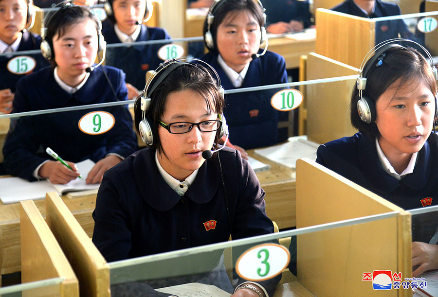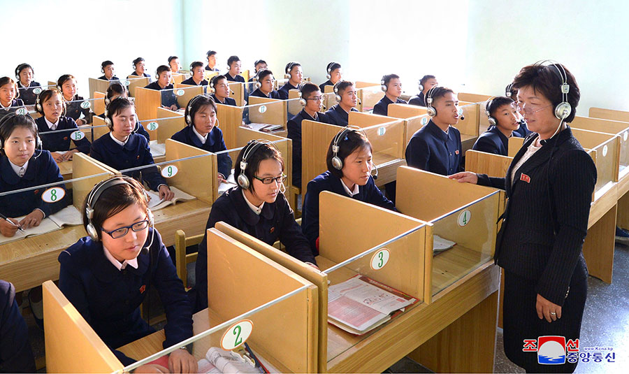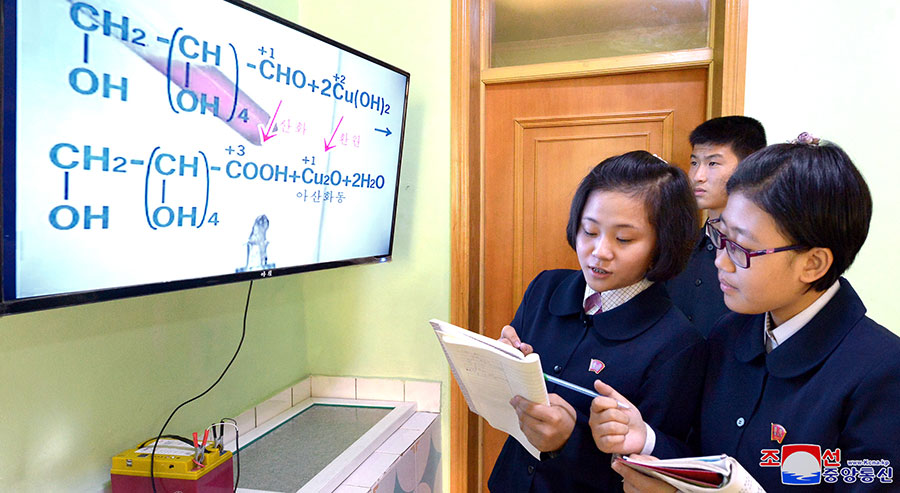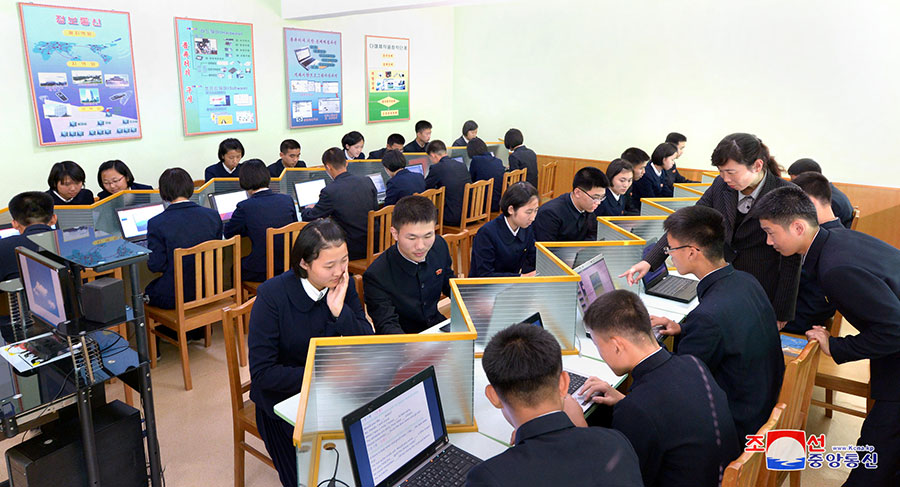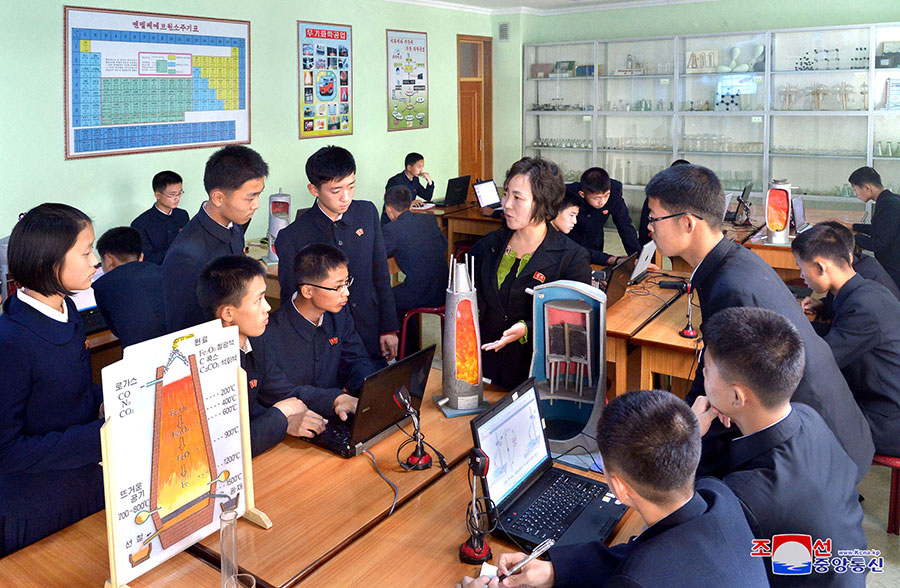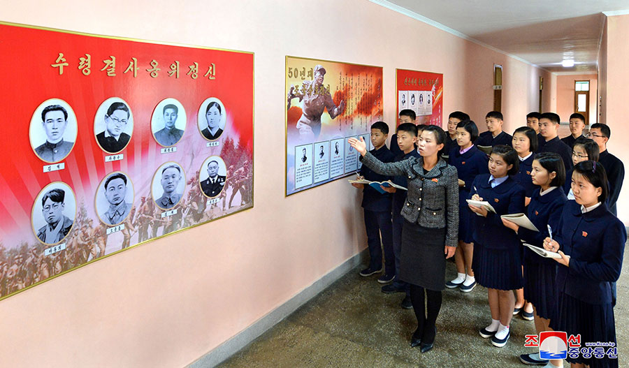 Pchjongjang, 22. října čučche 106 (2017) (KCNA) – Učitelé a studenti vyšší střední školy Segori v okrsku Potonggang hlavního města s hrdostí vytvářejí příklad vyššího středního vzdělání  v souladu se vzdělávací politikou strany, kráčejíce k vyšším cílům.