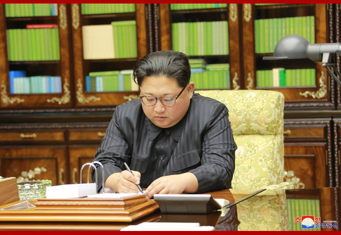 Pchjongjang, 29. listopadu čučche 106 (2017) – Soudruh Kim Čong Un, nejvyšší vůdce naší strany, státu a armády, vydal 28. listopadu čučche 106 (2017) vlastnoručně podepsaný rozkaz k provedení testovací střelby nově vyvinuté mezikontinentální balistické rakety Hwasong-15.