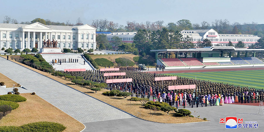 Přítomni zde byli soudruzi Čche Rjong He, člen předsednictva Politického byra ÚV Korejské strany práce, místopředseda Komise pro státní záležitosti KLDR a místopředseda ÚV KSP; armádní generálmajor O Rjong Tek, rektor školy, a budovatelé a učitelé a studenti školy.